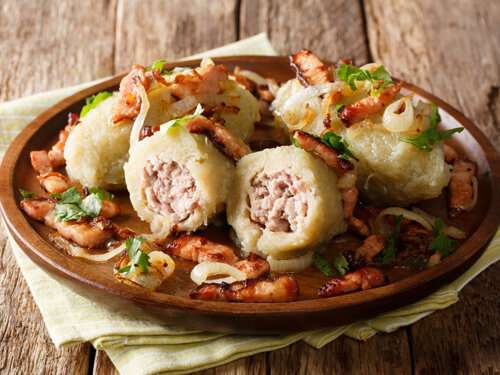- Цеппелины (Didžkukuliai) — знаменитое литовское блюдо, представляющее собой картофельные «дирижабли». Рецептура блюда очень проста, сверху тертый, вареный картофель, а внутри начинка из мясного фарша, иногда рубленого мяса. Подаются с соусом из сметаны, шкварками, луком или грибным соусом. Стандартные порции довольно крупные и сытные, поэтому можно заказывать по полпорции.